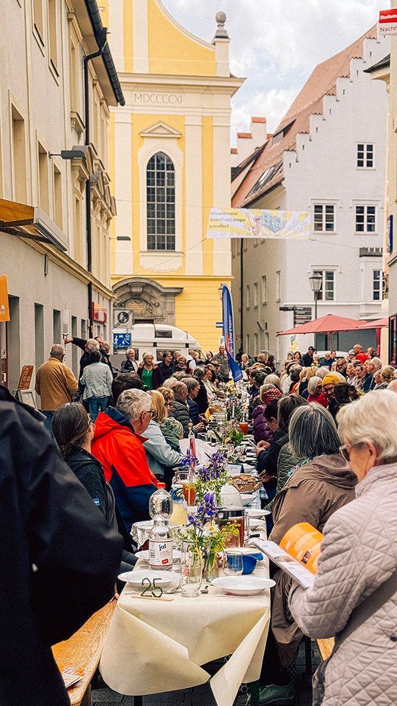 zwischen der Dreifaltigkeitskirche und der Stadtpfarrkirche St. Martin zur festlichen Tafel.