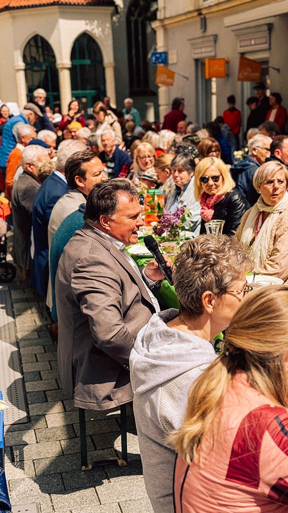 Zum 25. Jubiläum der Tafel Kaufbeuren (gegründet im Jahr 2000 als Gratislädle e. V.) trafen sich zahlreiche Bürgerinnen und Bürger unter freiem Himmel bei Sonnenschein an einer langen Tafel, um gemeinsam zu essen, zu plaudern und die besondere Atmosphäre zu genießen. Ganz ohne Anmeldung konnte man einfach Platz nehmen und mitten in Kaufbeuren Speisen und Gemeinschaft erleben. Ein gelungenes Fest voller Begegnungen, das Lust auf mehr macht!